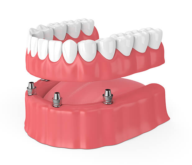 Some dental insurance plans may cover portions of the procedure, such as extractions or the denture. Implant coverage varies, so it’s best to review your benefits with your provider and visit our financial page for additional information.